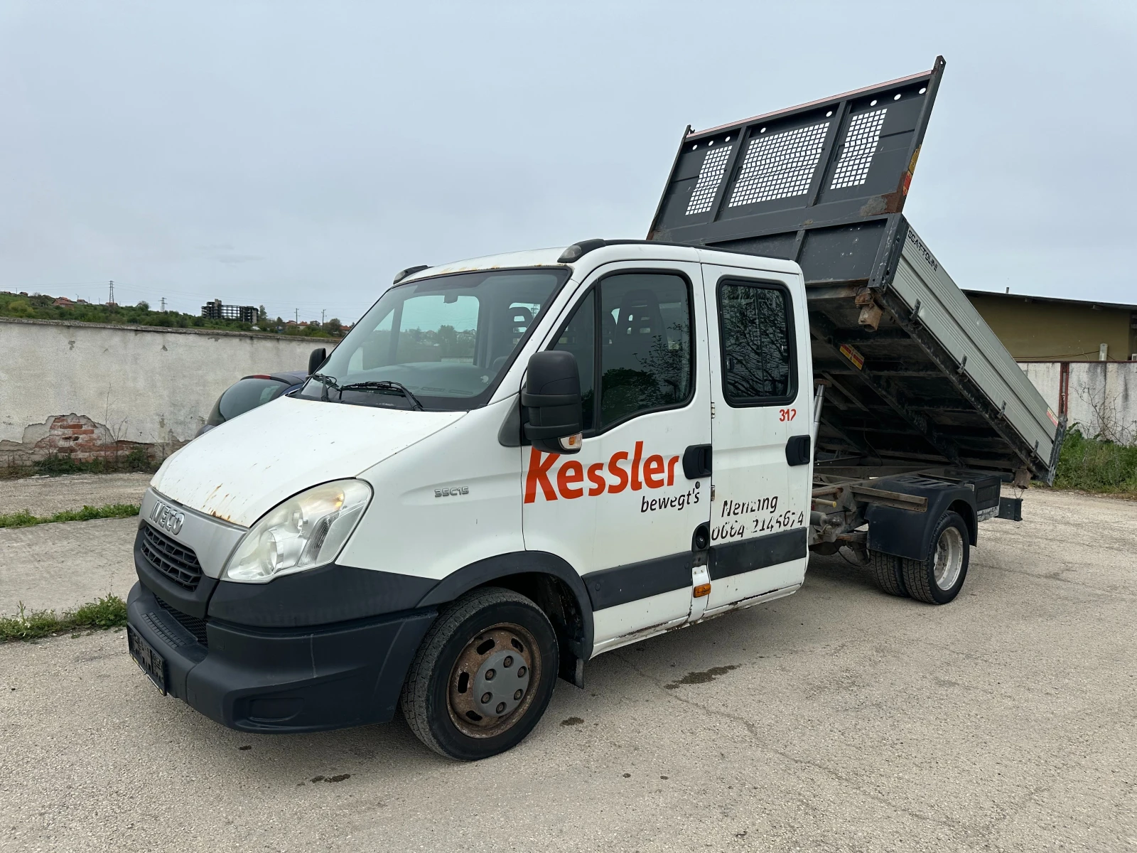 Модел: Iveco 35c15 Цена: 13 000 € / 25 425,79 лв. Състояние: Употребяван Тип: Самосвал Произведено: март 2013 г. Тип двигател: Iveco 35c15 Дизел Мощност[к.с.]: 150 к.с Скоростна кутия: Ръчна Евростандарт: EURO V Цвят: Бял Пробег: 218000 км Брой оси: 2 Брой места: 6 Товароносимост[кг]: 3500 кг