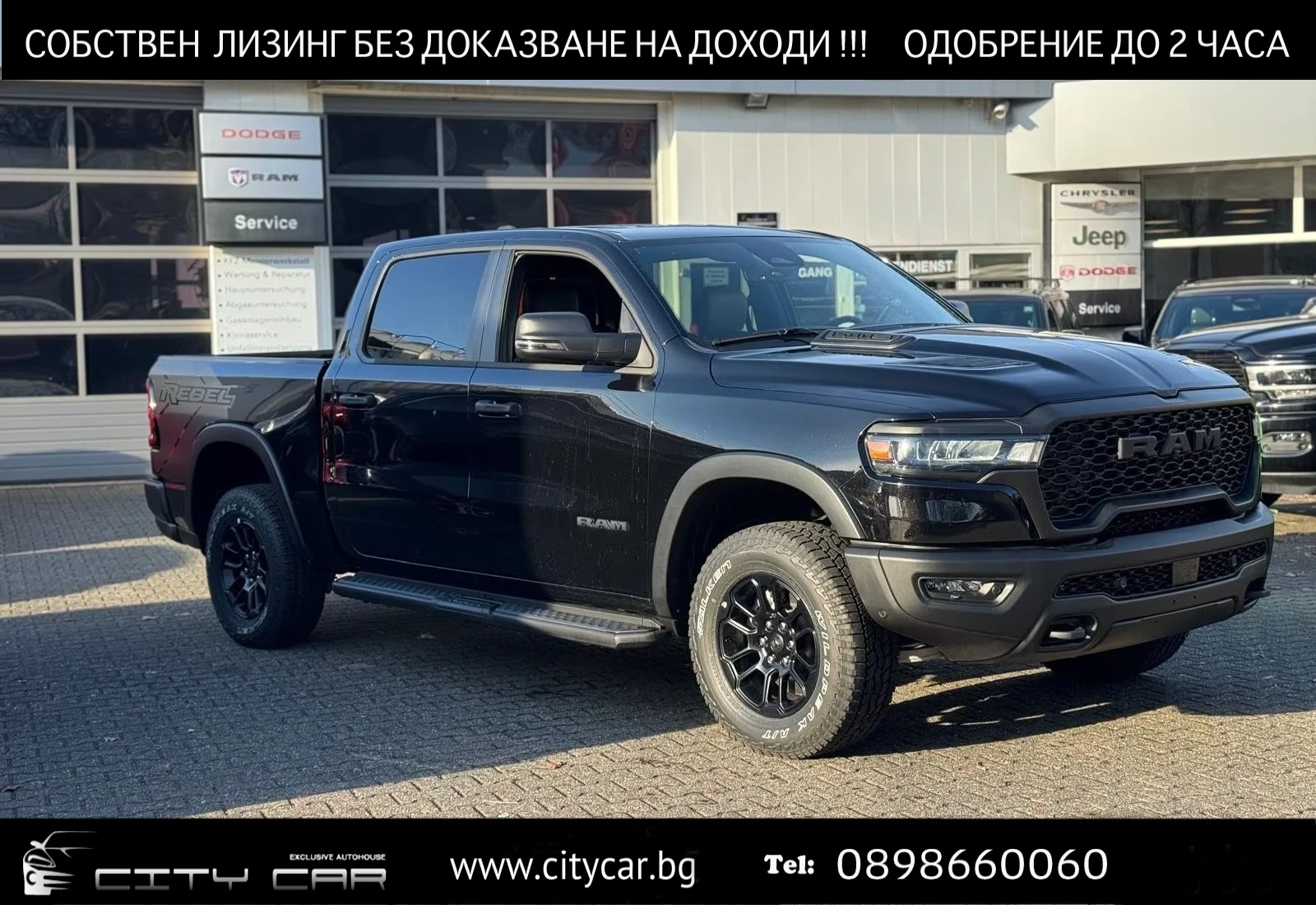 Над 20 години ние от CITY CAR предлагаме отбрани автомобили за нашите клиенти. Гордеем се с изграденото доверие и истинските приятелства. Имаме многогодишни традиции и работим с доверени водещи автокъщи и представителства от ГЕРМАНИЯ. Всички коли са проверени и със сервизна история. За нас е удоволствие да Ви предложим индивидуални условия за лизинг. Многогодишната ни практика на работа с най- големите лизингодатели е изградила доверие в нас с което клиентите на CITY CAR могат да се ползват, получавайки СПЕЦИАЛНИ УСЛОВИЯ И ИНДИВИДУАЛЕН ЛИЗИНГ, както и СОБСТВЕН ЛИЗИНГ БЕЗ ДОКАЗВАНЕ НА ДОХОДИ С ПРЕФЕРЕНЦИАЛНИ УСЛОВИЯ. С радост ще ви помогнем заедно да намерим подходящия за вас автомобил, който да отговаря на вашите жалния и бюджет. Предлагаме ВНОС НА АВТОМОБИЛИ И ДРУГА ТЕХНИКА ОТ ЧУЖБИНА ПО ЗАЯВКА, можем да изготвим индивидуална ПРОГРАМА ЗА ИЗКУПУВАНЕ и СМЯНА НА Вашия АВТОМОБИЛ, както и да предложим РЕГИСТРАЦИЯ В КАТ И СПЕЦИАЛНИ ЗАСТРАХОВКИ. Екипът на CITY CAR е съставен от експерти с опит, които са на Ваше разположение от понеделник до петък от 9: 00 до 18: 00, и събота от 9: 00до 15: 00 часа. При заявка от Ваша страна, може да Ви обслужим и в извън работно време. Не се притеснявайте да се свържете с нас ! Адрес: София, ул. Бойчо Бойчев 61 (Околовръстен път) Тел: 0898 66 00 60; 0899 92 81 00; 02/956 95 10 Описание на превозното средство - РАЗЛИЧНИ РЕЖИМИ НА ШОФИРАНЕ, УПРАВЛЯЕМИ ОТ ВОЛАНА - НОЩЕН ПАКЕТ (ДЖАНТИ, ДРЪЖКИ НА ВРАТИТЕ, РЕШЕТКА И ЕМБЛЕМИ В ЧЕРНО) - КАБИНА С ДВОЙНА КАБИНА - АДАПТИВЕН КРУИЗ КОНТРОЛ - СИСТЕМА ЗА ПОДПОМАГАНЕ ПРИ СПИРАНЕ (BAS) - СИСТЕМА ЗА ПРЕДУПРЕЖДЕНИЕ ПРИ СБЛЪСЪК - АСИСТЕНТ ЗА ПОДДЪРЖАНЕ НА ЛЕНТАТА - 12 UCONNECT 5 С НАВИГАЦИОННА СИСТЕМА ЗА ЕС, РАДИО, БЕЗЖИЧЕН APPLE CARPLAY И ANDROID AUTO, USB-/AUX-ВРЪЗКА, АУДИО СТРИЙМИНГ ЧРЕЗ BLUETOOTH, 12 СЕНЗОРЕН ЕКРАН - БЕЗЖИЧНА ИНДУКЦИОННА ЗАРЯДНА СТАНЦИЯ - ЧАСТИЧНО КОЖЕНО ОБЗАВЕЖДАНЕ С БРОДЕРИЯ В ЧЕРНО/ЧЕРВЕНО - LED ФАРОВЕ И ДНЕВНИ СВЕТЛИНИ - ЕЛЕКТРОННА БЛОКИРОВКА НА ЗАДНИЯ ДИФЕРЕНЦИАЛ - СИСТЕМА ЗА СВОБОДНИ РЪЦЕ ЧРЕЗ BLUETOOTH - СИСТЕМА ЗА ПАРКИРАНЕ ОТПРЕД И ОТЗАД С АВТОМАТИЧНА СПИРАЧНА ФУНКЦИЯ - ОТОПЛЕНИЕ НА ПРЕДНИТЕ СЕДАЛКИ - ОТОПЛЯЕМ КОЖЕН ВОЛАН - МЕНЮ И НАВИГАЦИОННА СИСТЕМА С НЕМСКИ ЕЗИК - СИСТЕМА ЗА СЛЕДЕНЕ НА МЪРТВАТА ЗОНА С РАЗПОЗНАВАНЕ НА ДВИЖЕНИЕ ОТЗАД (НАПРЕЧНО ДВИЖЕНИЕ) - ДЪЖДОВЕН СЕНЗОР ЗА ЧИСТАЧКИТЕ - ТЕГЛИЧ ЗА РЕМАРКЕ, ВКЛЮЧИТЕЛНО ЕЛЕКТРИЧЕСКИ КОМПЛЕКТ С 13-ПИНОВ КОНТАКТ - ТЕГЛО НА РЕМАРКЕТО: 3 500 КГ - ДОПУСТИМО ОБЩО ТЕГЛО: 3 500 КГ - 8-СТЕПЕННА АВТОМАТИЧНА СКОРОСТНА КУТИЯ - БАГАЖНО ПРОСТРАНСТВО ПОД ЗАДНАТА СЕДАЛКА - ЗАДНА СЕДАЛКА, РАЗДЕЛЯЕМА В СЪОТНОШЕНИЕ 60/40 - АСИСТЕНТ ЗА ДЪЛГИ СВЕТЛИНИ - АВТОМАТИЧНО ВКЛЮЧВАНЕ НА ФАРОВЕТЕ - KEYLESS ENTRY & GO - ПРЕДНИ И СТРАНИЧНИ ВЪЗДУШНИ ВЪЗГЛАВНИЦИ ЗА ВОДАЧА И ПЪТНИКА - ВЪЗДУШНИ ВЪЗГЛАВНИЦИ ЗА ДВАТА РЕДА СЕДАЛКИ - ЕЛЕКТРОННА СТАБИЛИЗИРАЩА СИСТЕМА (ESP) СЪС СТАБИЛИЗАЦИЯ НА РЕМАРКЕТО - АЛАРМЕНА СИСТЕМА - ВКЛЮЧВАЩА СЕ СИСТЕМА ЗА ЗАДВИЖВАНЕ НА ЧЕТИРИТЕ КОЛЕЛА С ПРЕДАВКА ЗА ТЕРЕН - ЕЛЕКТРОННА БЛОКИРОВКА НА ДИФЕРЕНЦИАЛА - ЕЛЕКТРИЧЕСКИ РЕГУЛИРУЕМИ СЕДАЛКИ - ОПОРА ЗА ЛУМБАЛНИТЕ ПРЕШЛЕНИ - ЕЛЕКТРИЧЕСКИ РЕГУЛИРУЕМИ ПЕДАЛИ ПО ВИСОЧИНА - ЕЛЕКТРИЧЕСКИ ОТВАРЯЩ СЕ ЗАДЕН ПРОЗОРЕЦ - БОРДОВИ КОМПЮТЪР - ДИСТАНЦИОННО СТАРТИРАНЕ С ДИСТАНЦИОННО УПРАВЛЕНИЕ ЦЕНАТА Е БЕЗ ДДС!