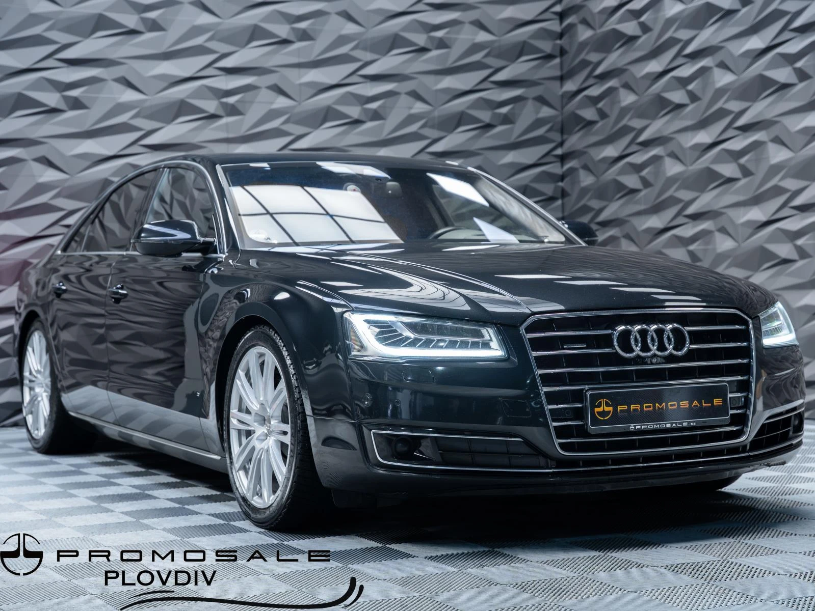 ПРЕДЛАГАМЕ ВИ ЛИЗИНГ ДО 48 МЕСЕЦА С ПРЕФЕРЕНЦИАЛНИ УСЛОВИЯ И БЪРЗО ОДОБРЕНИЕ, БЕЗ ДОКАЗВАНЕ НА ДОХОДИТЕ! За повече информация ни посетете на WWW. PROMOSALEPLOVDIV. BG! /nAudi A8 (D4) 2014 лукс седан автоматик quattro Елегантен и представителен дизайн Вграден хладилник за напитки LED фарове с отлична видимост Дневни LED светлини Хромирани елементи по екстериора Парктроници отпред и отзад Сензори за светлина и дъжд Затъмнени стъкла Луксозен кожен салон Електрически регулируеми седалки с памет Подгрев на седалките Вентилация на седалките (възможно) Масаж на седалките Дървени декоративни елементи Амбиентно осветление в интериора MMI мултимедийна система Голям централен дисплей Навигация Bluetooth свързаност BOSE озвучителна система с висококачествен звук Многозонов климатроник Отделен контрол за задните пътници Задна масичка (лукс пакет за пътниците отзад) Комфортен и просторен интериор Адаптивен круиз контрол Асистент за поддържане на лента Предупреждение при напускане на лента Система за следене на мъртва точка Парктроник + камера за паркиране Keyless достъп и палене Електрически багажник Старт/стоп система Електрическа ръчна спирачка Дизелов двигател Автоматична скоростна кутия quattro задвижване Много стабилно поведение на пътя Премиум клас седан от най-високо ниво Изключителен комфорт при дълги пътувания Подходящ както за лично ползване, така и за бизнес / VIP транспорт